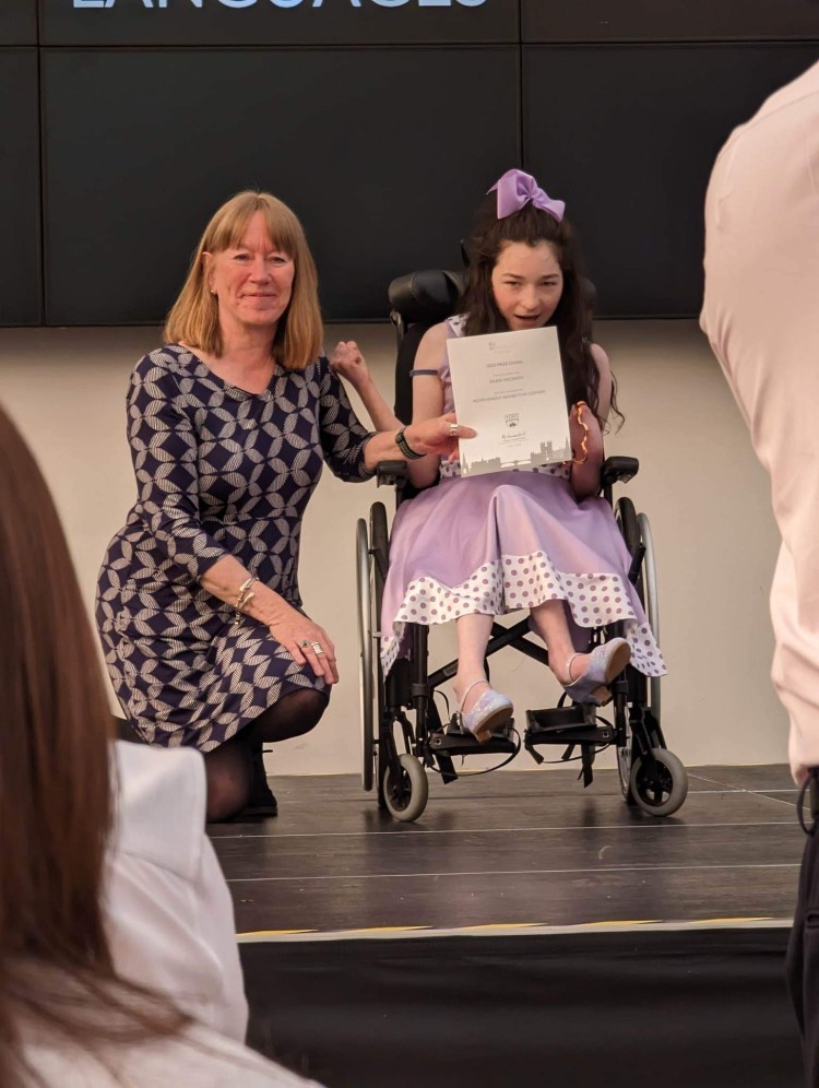My name is Eilidh Elizabeth Molly McGrath and I have Cerebral Palsy which means that I communicate nonverbally. Despite my disability. I managed to go from absolute German beginner to award-winning German degree student in the space of 3 years!